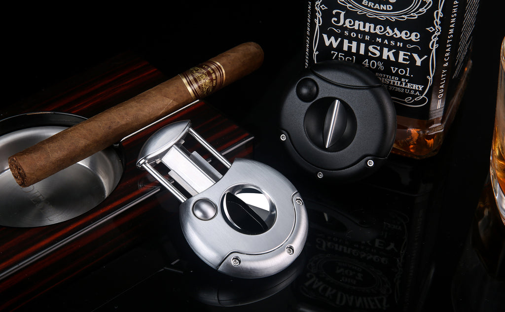 • V-shaped cutter: Classic cigar cutter. Penetrates up to 7mm into the cap. Works good on large 60+ ring gauge cigars and torpedoes.