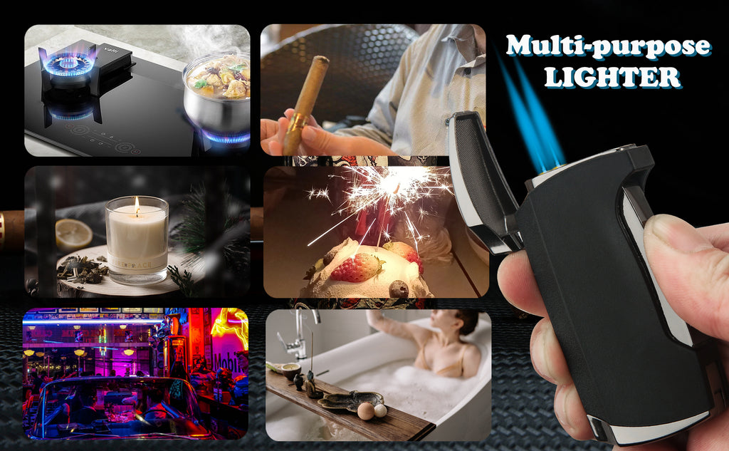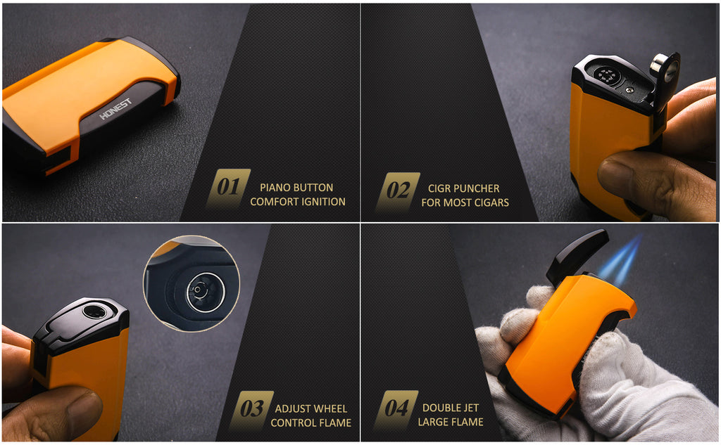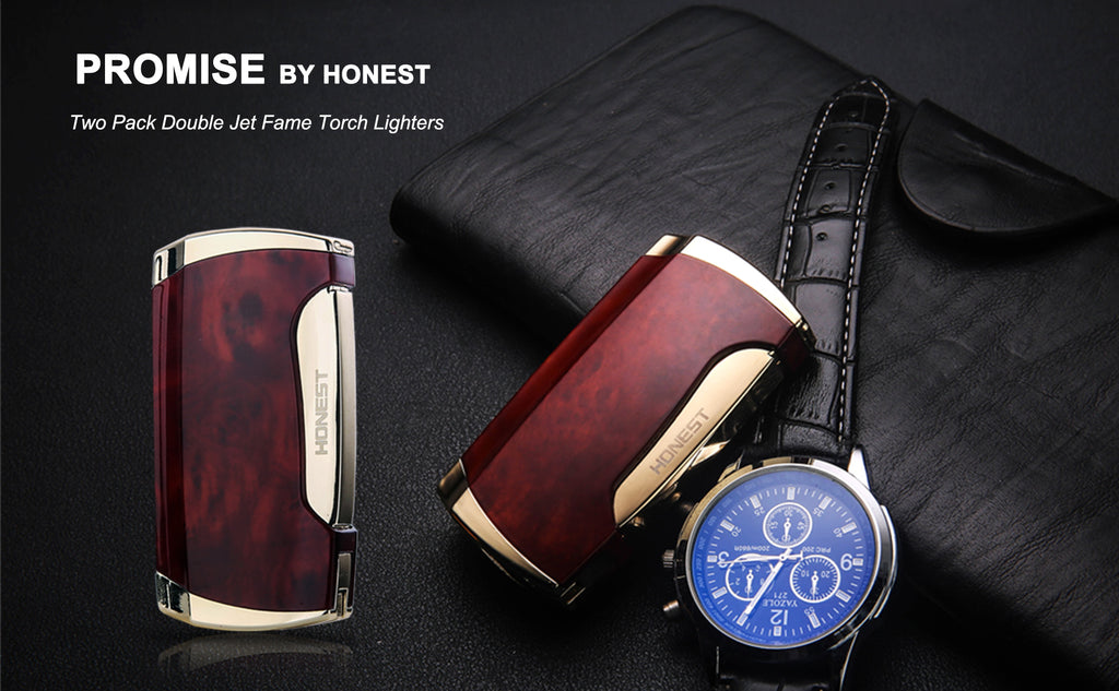 HONEST Cigar Lighter Double Jet flame with Cigar Punch(send without gas) 2 PCS Pack