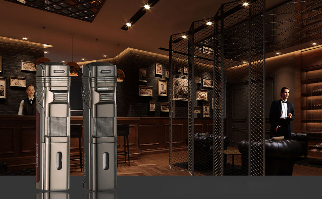 - 🔥 Unique Red Flame Cigar Lighter With Cigar Punch: Strong 4 jets flame torch cigar lighter for any cigar sizes. A cigar drill is designed at the bottom of the lighter for easy drilling of cigars.Red color windproof flames can evenly and quickly light your cigars, and inspire you a great release and a pleasure enjoyment.