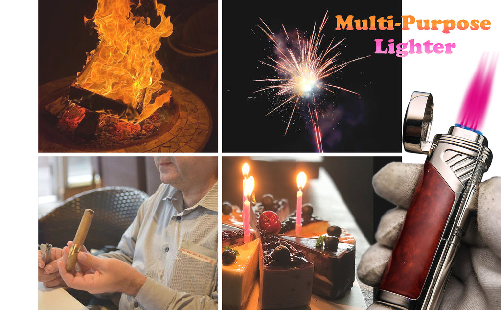- 🔥 Flame Adjustable: You can adjust the flame size through the flame adjustment valve at the bottom of the lighter, to "+" to increase the flame, and to "-" to decrease the flame.