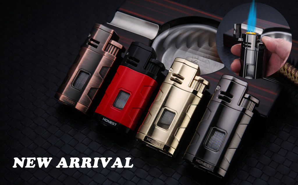 HONES Torch Lighter Triple Jet Flame Cigar Lighter Windproof with Cigar Punch