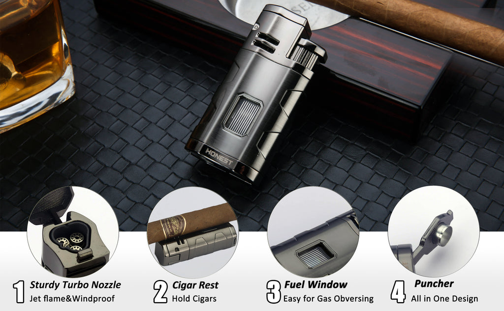 • 🔥 Unique Cigar Lighter With Cigar Punch: Made with high quality materials for leak free and long lasting use.