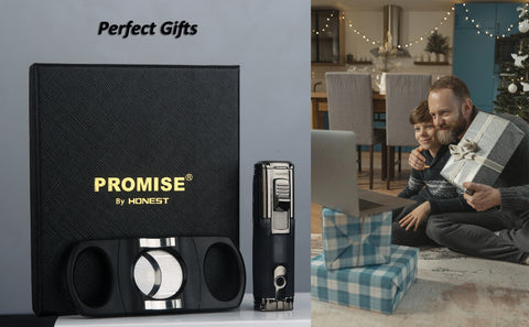 Honest Cigar Lighter Torch Lighter Windproof Triple 3 Jet Flame Lighter Butane Refillable with Built in Cigar Punch Lighter and Cutter In Giftbox