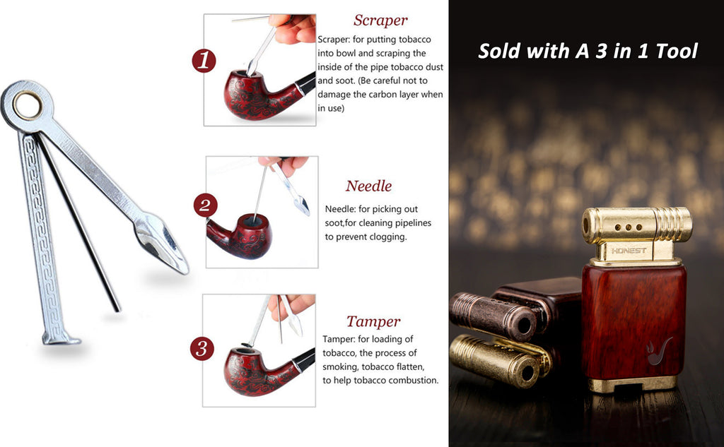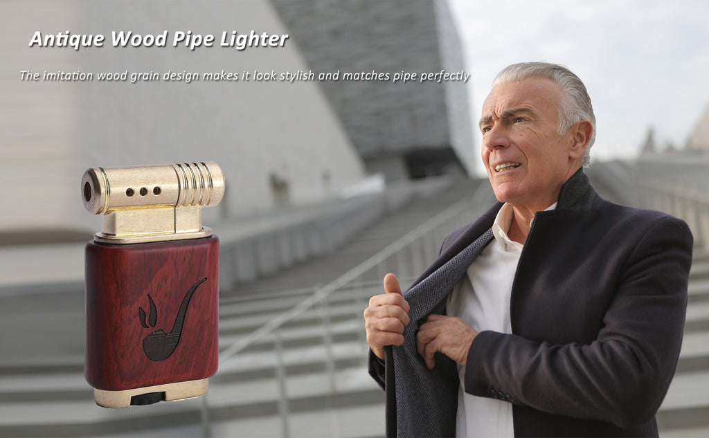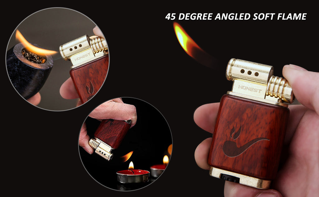 HONEST Pipe Lighter Soft Flame Lighter Refillable Butane Lighters Czech Pipe Tools Father Day Husband Gift (Red Wood)